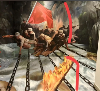 纪念馆里的老照片,把我拉回那段惊心动魄的历史。当时,红四团一昼夜奔袭240里,相当于连续跑步超过10小时,穿越崎岖山路,翻越险峻山岭,最终在预定时间抵达泸定桥西岸。这不仅是体能的极限挑战,更是意志的生死考验。赶到泸定桥时,桥面的木板已被对岸的敌人尽数拆除,只剩下一条条冰冷的铁索悬在半空,宛如一条通往地狱的钢绳。对岸的碉堡里,敌人的机枪正对着桥头,构筑起一道几乎无法逾越的火网。他们笃定,没有人能活着通过这座“死亡之桥”。但红军战士没有退缩。连长廖大珠带领突击队,腰缠手榴弹,手持冲锋枪,踩着摇晃的铁索向对岸冲去。子弹在耳边呼啸,炮弹在身边爆炸,有的战士中弹坠入河中,消失在浪涛里,剩下的人却依旧奋勇向前。有人负伤仍坚持爬行,用血肉之躯铺就前进的道路。正是这股视死如归的勇气,最终撕开了敌人的防线,为后续部队打开了通道。