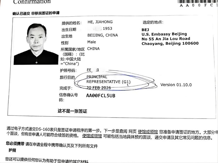 在办理签证时,我遇到一个小问题。3月25日,我按预约到美国驻华大使馆面签。要去美国的人还是挺多的,我排队近两个小时。审查护照等申请材料的使馆人员是中年男子。他看了我的材料之后,问我要申请哪类签证。我说是B1商务签证。他说电脑显示你要申请的是G1签证。他还在我的申请确认单上画了个圈,让我看。那里打印的也是G1,而我此前没有注意。我不知这是什么签证,但我清楚地记得我在申请时选择的就是B1。我说这错了,然后讲了我的身份和去美国的目的。他对足球很感兴趣,问了一些国际足联的问题,还说以后在北京有这类活动,他愿意去给我当助手。最后他说,办G1签证很复杂,我要提供外交护照或相关组织的证明,然后就帮我改为B1签证。随后的领事面谈很顺畅,当即告知我获批签证。一周之后,我收到盖有美国签证的护照。