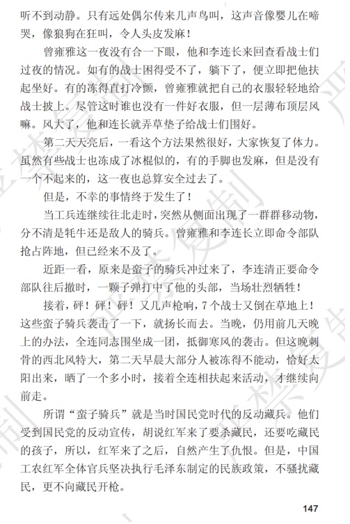 一路上,有些战士饥寒交加,倒下就起不来。5分钟里,就倒下牺牲了3名红军战士! 途中,还有国民党策动的反动藏兵“蛮子骑兵”来袭扰,打死打伤了许多红军战士。