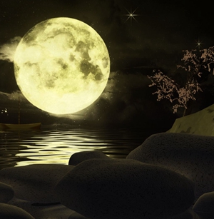 黄昏,山色一下暗下来,天空变得深遂湛蓝。黑黝黝的东山上,两个黛黑的峰峦间忽然跳出一个又大又圆的月亮,红红的,如佳人姝丽羞赧发烫的脸。翘首间,与你赫然对视。微风轻拂,又似一个霓裳羽衣的神女,从仙山神阁间翩翩而来,长袖飘逸,要为你轻抚一指琴瑟。