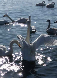 天鹅最美丽的时候是飞起来的情景,它飞起来像仙女一样美,洁白的羽毛,飞向蓝蓝的天空。每年春天,天鹅会成群结队地飞向这里,天鹅湖因此而得名。