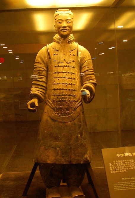 我还去参观了被称为世界第八大奇迹-秦兵马俑。走进兵马俑博物馆,我被那栩栩如生的兵马俑所震撼。那细致的工艺,连一小根头发也刻画得精细极了。通过导游细致的讲解,我明白了:当年人们是怎样发现兵马俑的以及兵马俑是如何出土的。其实当年的兵马俑各个都有鲜艳和谐的彩绘。发掘过程中发现有的陶俑刚出土时局部还保留着鲜艳的颜色,出土后由于空气干燥,颜色就慢慢地脱落了。现在能看到的只是残留的彩绘痕迹。兵马俑的车兵、步兵、骑兵列成各种阵势。整体风格浑厚、健美、洗练。如果仔细观察,脸型、发型、体态、神韵均有差异:陶马有的双耳竖立,有的张嘴嘶鸣,有的闭嘴静立。所有这些秦始皇兵马俑都富有感染人的艺术魅力。虽然只开发了一部分,但是场面还是非常漂亮,气势恢宏,不愧为世界一大奇迹,货真价实的历史遗物。