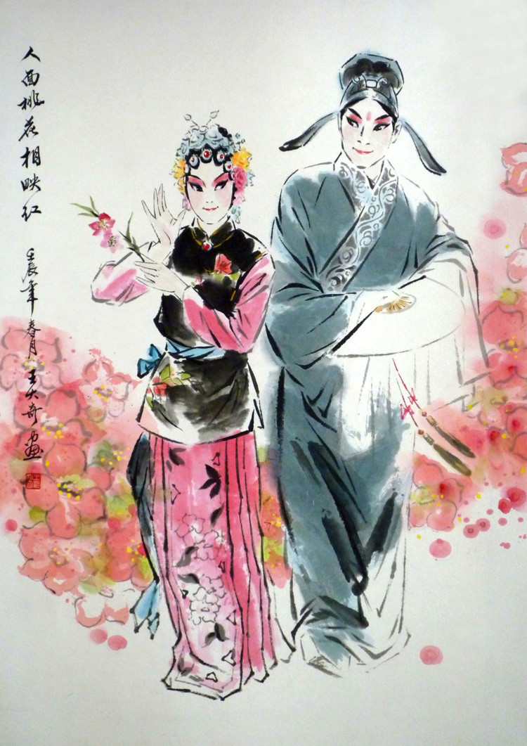 至此方悟,原来,这出戏是从唐人崔护的《题都城南庄》演绎出来的。