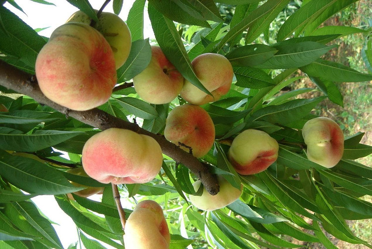那桃树果然也不负所望,每年桃熟的时候,树上挤挤挨挨挂满了柿饼似扁圆的蟠桃。但是他们并不将这美丽的果实独享,也不用它去赚取农人的钱。他们总是将熟透了的桃子小心翼翼地摘下来,算好了家数,给附近的村民挨家挨户送去,若是谁家有小孩子,便可多得两个,因而借着两位老人的荫泽,虽然我小时候家里很穷,但每年也可吃到几个蟠桃。