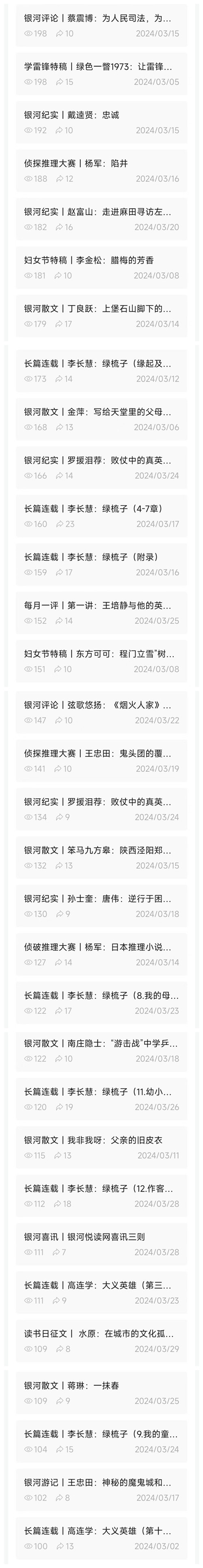 2024年银河悦读公众号每月工作月报