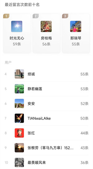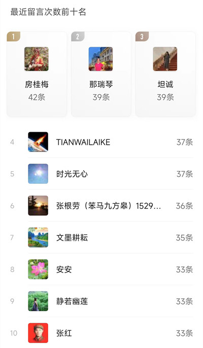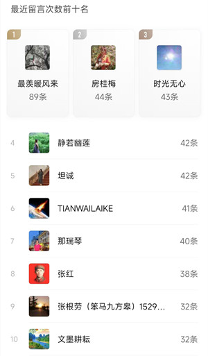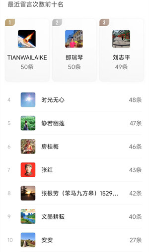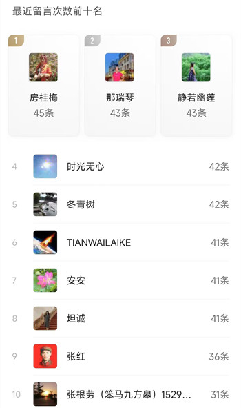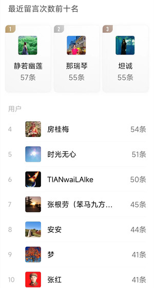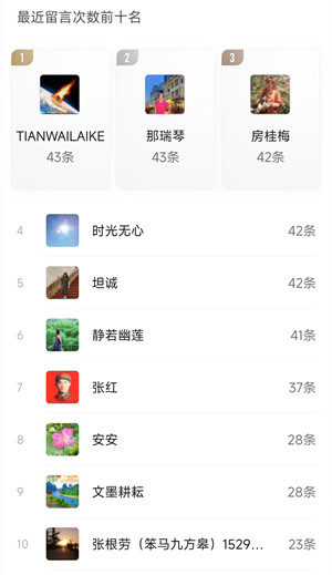 3、个人留言前十名;