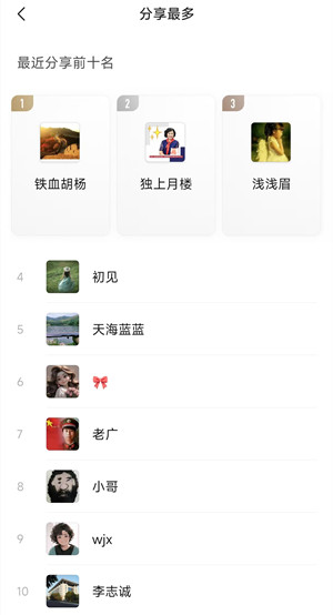 2、个人分享前十名;