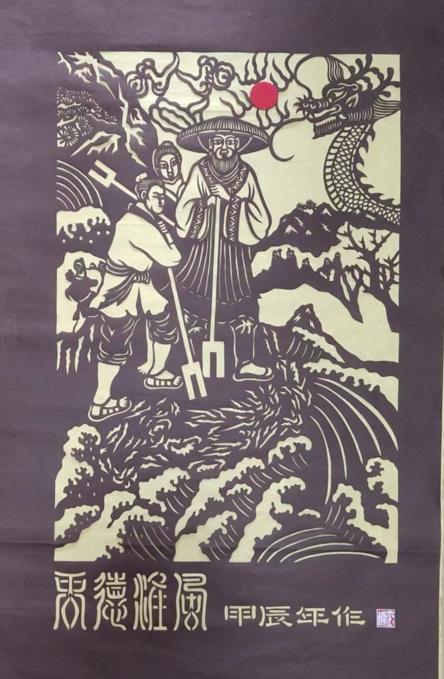 甲辰春节,金龙飞舞,大禹治水,寓意深刻。欣赏王金矿老师的纸两张!