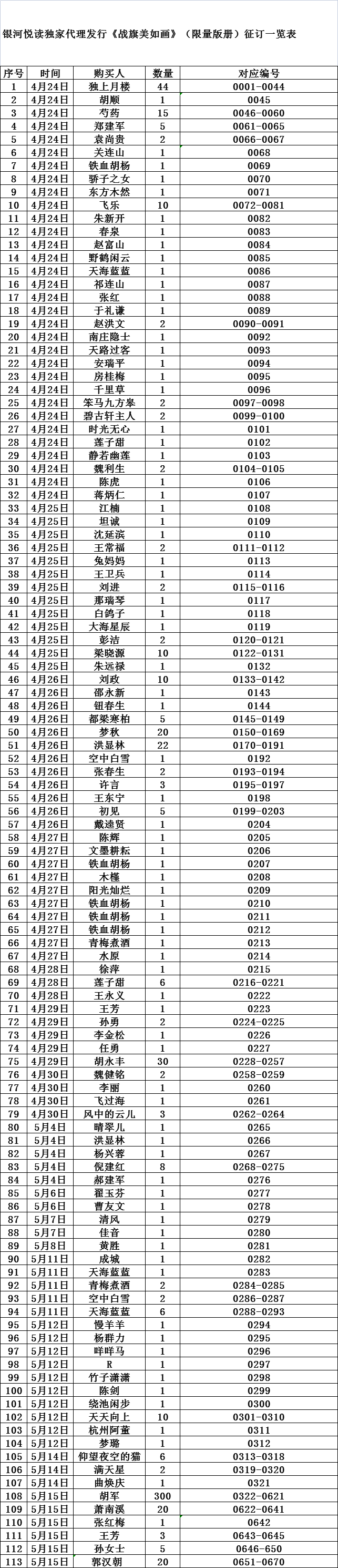 《战旗美如画》征订一览表(随时更新,请大家认真核对)