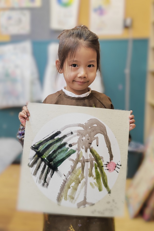 五周岁的小朋友作品,笔法虽然稚嫩,但是把芭蕉与瓢虫的意象都表达出来了!