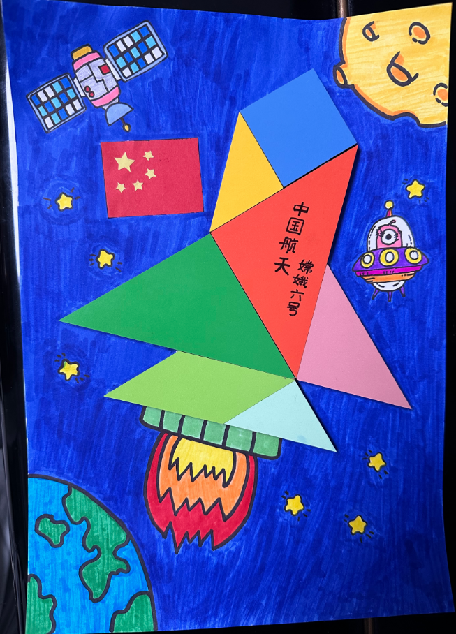 古有嫦娥居月宫,今有飞船游月球。欣赏孩童的理想。