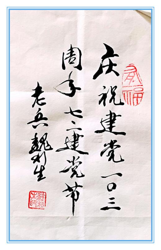 祝贺党的生日103周年,同时祝贺魏利生老师党龄53周年!为魏利生老师的文墨点赞!
