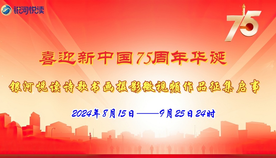 祝贺银河悦读迎国庆75周年华诞诗歌书画摄影微视频作品征集治动圆满成功!