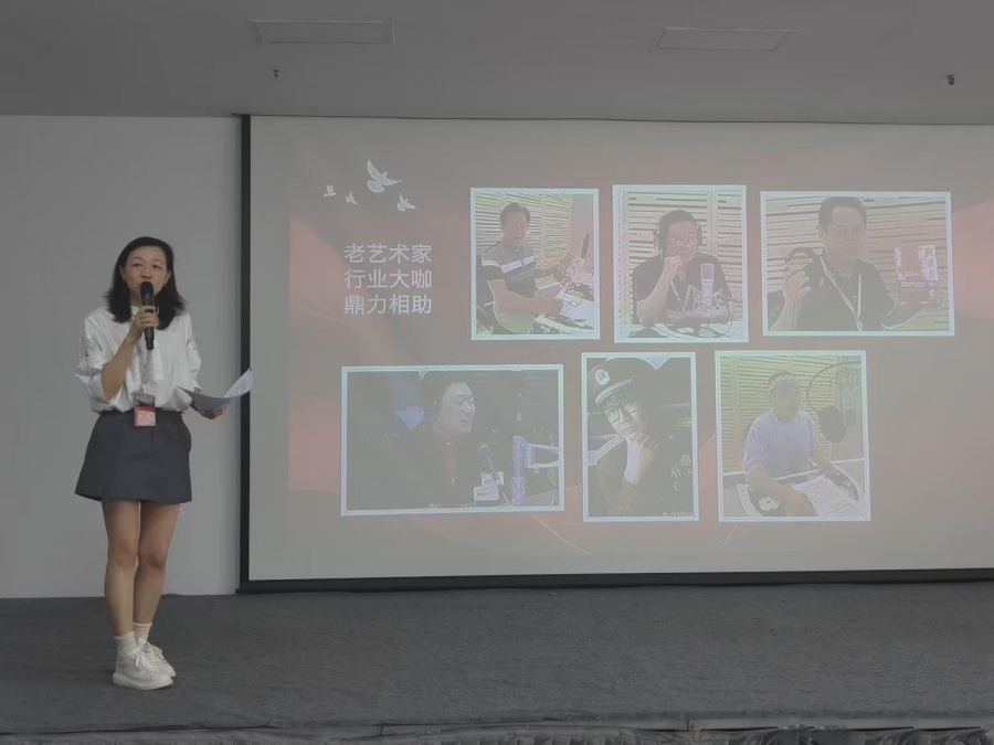 这是本次新书发布会的又一大亮点:“八一”建军节当天,《战旗美如画》同名广播剧正式上线。该剧由北京巨果果文化传媒有限公司制作发行,演员唐国强、刘劲、丁勇岱等加盟支持。北京巨果果文化传媒有限公司副总经理薛燕为大家介绍了《战旗美如画》广播剧台制作的台前幕后及作品特点。(链接有关视频)