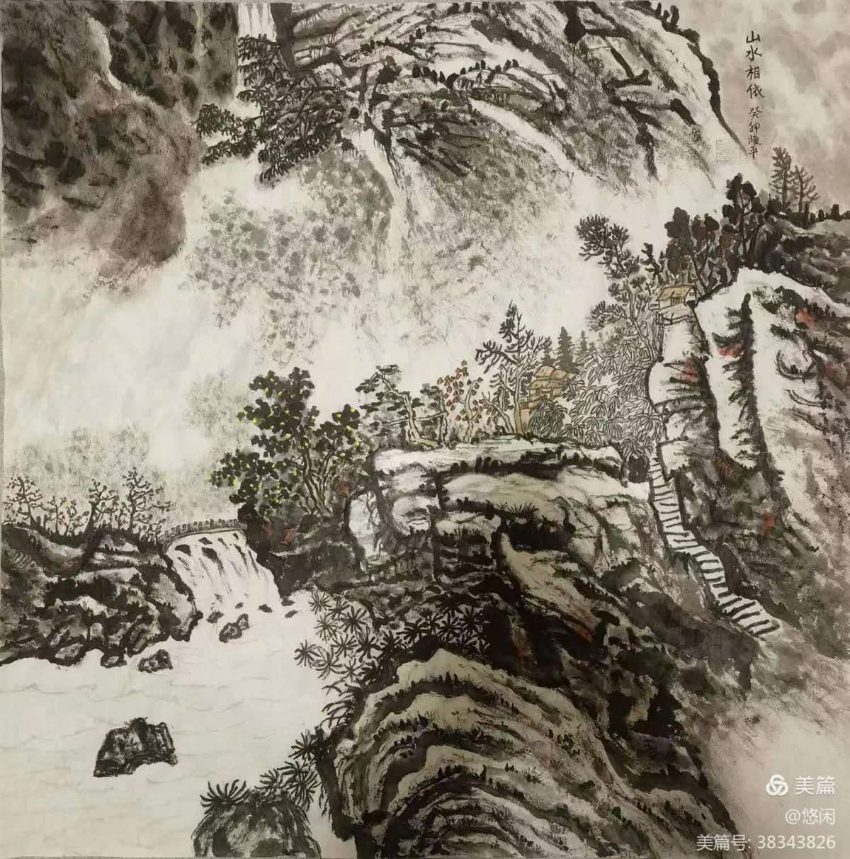 国画清新深寓意,神山秀水聚仙神。欣赏佳作。