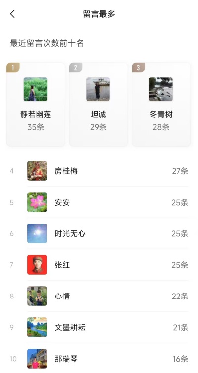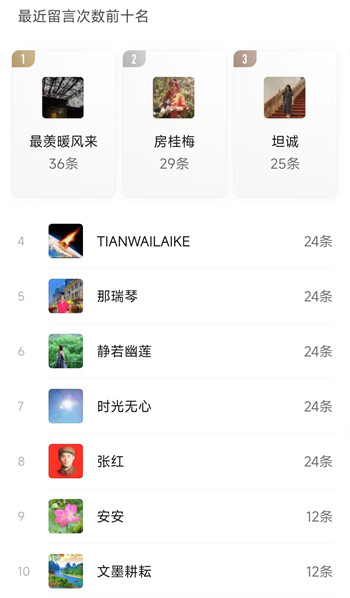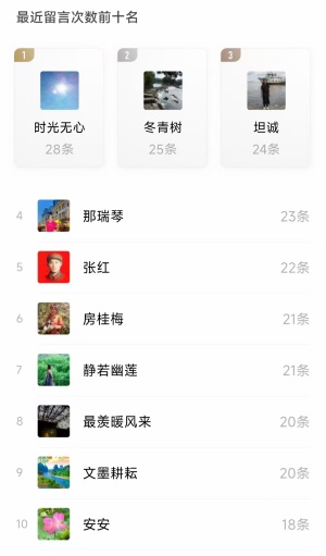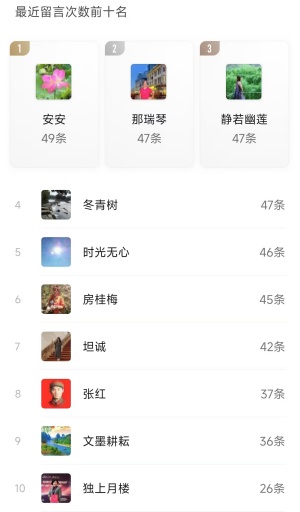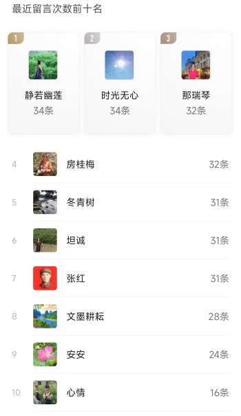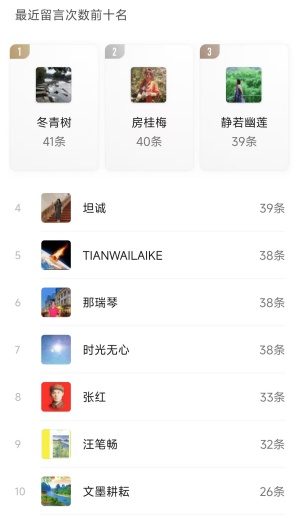 3、个人留言前十名;