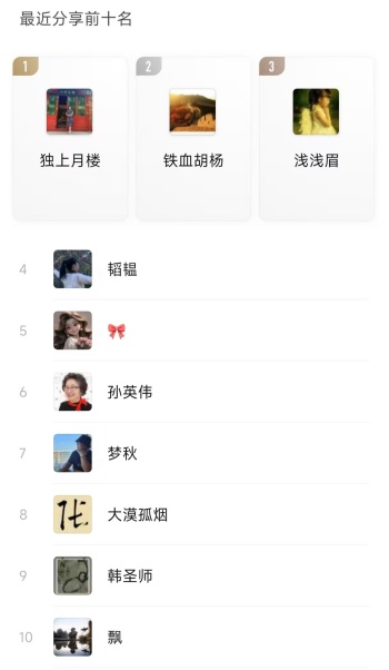 2、个人分享前十名;