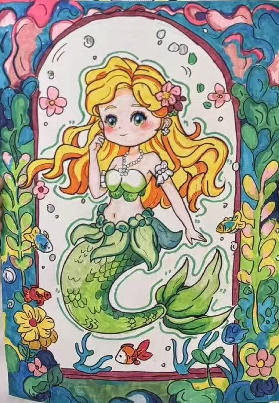 点赞孙艺豆画的自己喜爱的《美人鱼》作品,栩栩如生!
