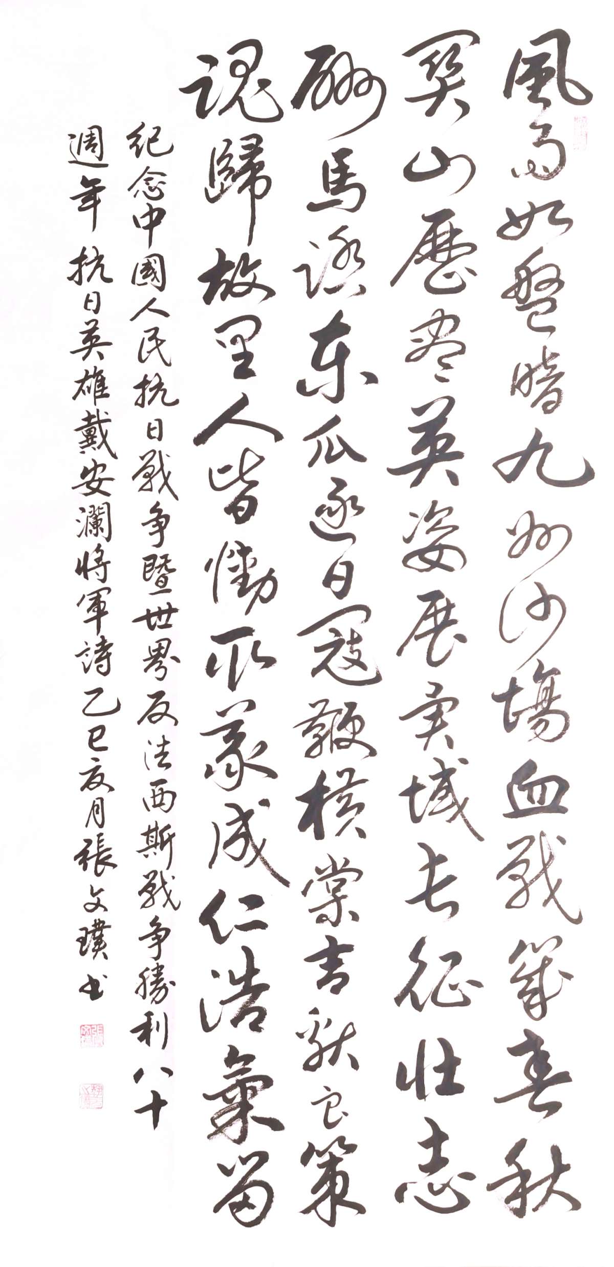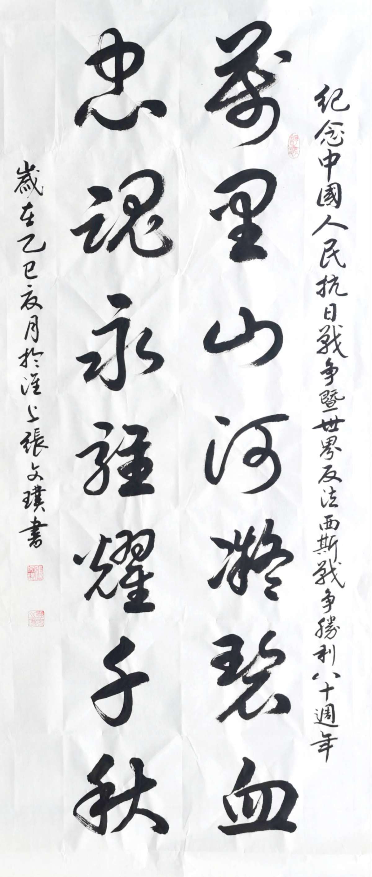 欣赏并点赞張文璞书法作品《纪念中国人民抗日战争暨世界反法西斯战争胜利八十周年》两幅!