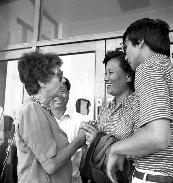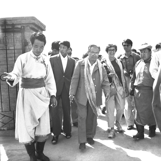 黄华副委员长和斯诺夫人等代表走访萨拉齐牧民生活区的乡亲。