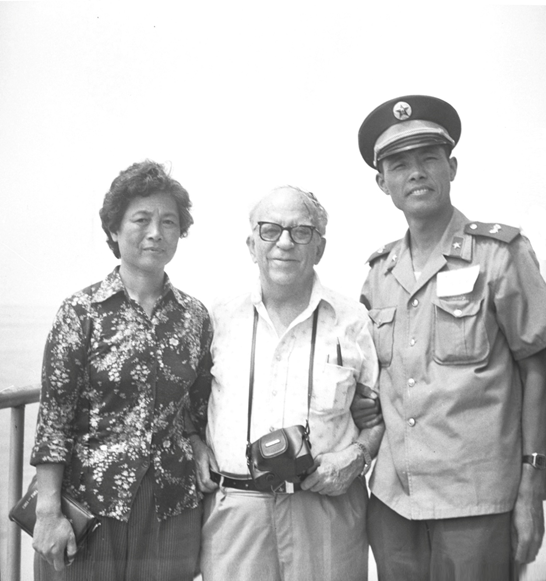 波兰著名国际友人、杰出的国际主义战士、优秀的新闻记者和作家、全国政协常委伊斯雷尔•爱泼斯坦(中)和夫人与“回民支队”后代吴榴楠合影。