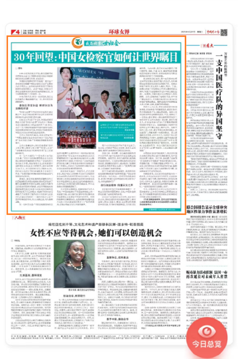 祝贺站长佳作《30年回望:中国女检察官如何让世界瞩目》刊于2025年8月20日《中国妇女报》