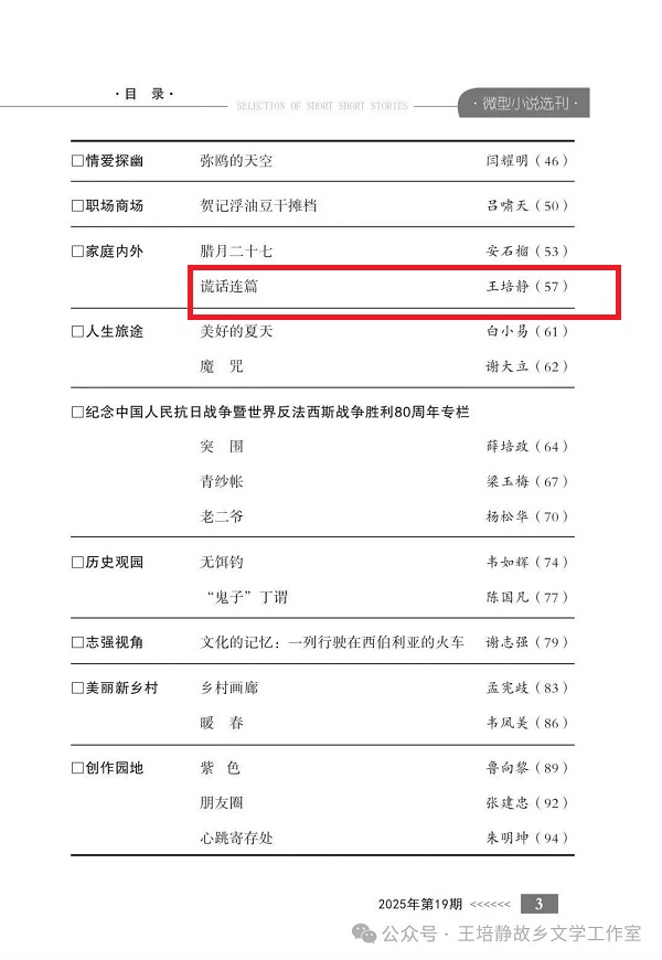 4、《谎话连篇》被《微型小说选刊》2025年19期转载