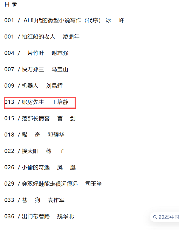5、《账房先生》入选《2025中国年度微型小说》