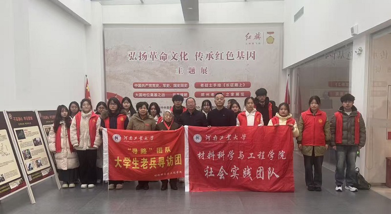 上午10点,河南工业大学材料科学与工程学院大学生寒假社会实践团队一行15名大学生进中牟新区新时代文明实践点、郑州博行大展红旗体验中心,参观了由县委宣部、县文明办、县新时代文明实践中心主办,郑州抗美援朝老战士之家传承红色基因志愿服队和博行大展红旗承办的“弘扬革命文化 传承红色基因”主题展,同时举行2026年寒假“追寻红色记忆·寻访最可爱的人”社会实践活动启动仪式!标志着2026年度郑州抗美援朝老战士之家联合河南工业大学材料科学与工程学院开展的“追寻红色记忆 寻访最可爱的人”社会实践活动正式启动。