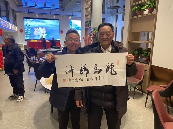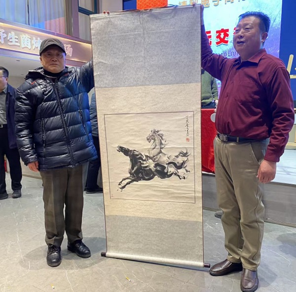中国非遗剪纸艺术传承人、淮水人分站驻站老艺术家王金矿老师为所有的与会人员赠送了马年剪纸《马到成功》!