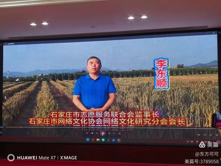 石家庄分站站长、石家庄市网络文化协会网络文化研究会分会会长、石家庄市志愿服务联合会监事长、河北博客联盟主席李东顺通过视频致辞
