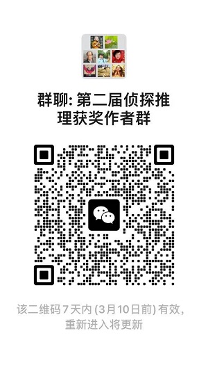 这里是第二届周泰杯侦探推理大赛获奖作者群,欢迎大家扫下面二维码进群!