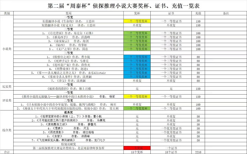 附:第二届周泰杯侦探推理大赛获奖作者名单——