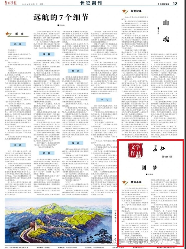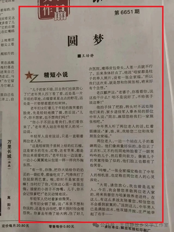 祝贺驻站作家王培静佳作《圆梦》刊发《解放军报》