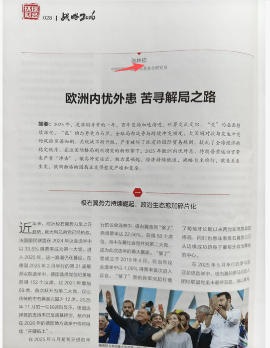 祝贺退休武官张林初银河佳作巜欧洲内忧外患 苦寻解局之路》刊登于巜环球财经》2026年第2丶3期及其公众号