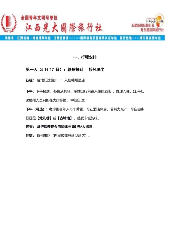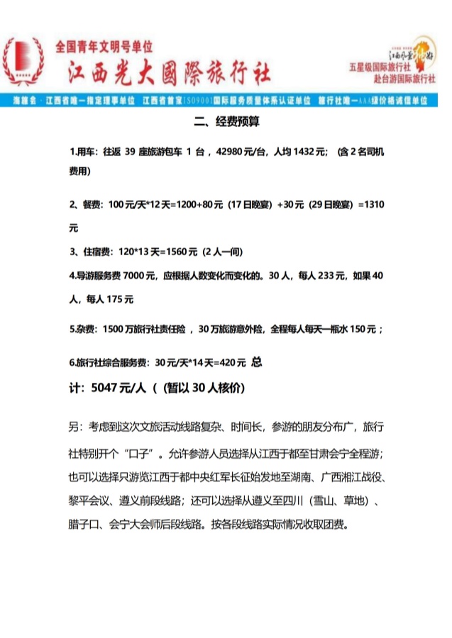 1、允许参游人员选择从江西于都至甘肃会宁全程游。