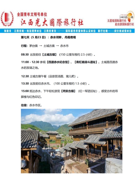 第七天(5月23日):赤水河畔,丹霞奇观,晚住赤水市区。