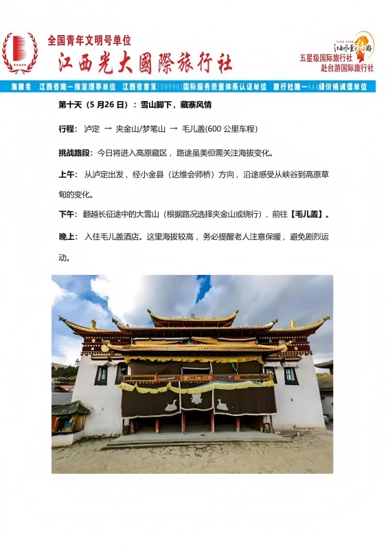 第十天(5月26日):雪山脚下,藏寨风情,晚住毛儿盖。