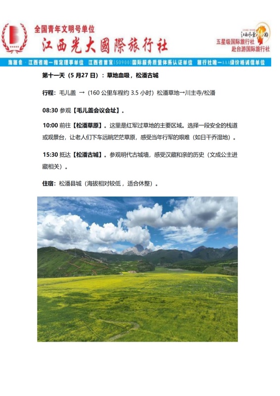 此次红色文旅活动,不只是一次重走长征路的行走,更是一场追寻初心、致敬先烈的精神远行。我们将以实际行动深切告慰革命先烈:你们爬雪山、过草地的英雄壮举从未被遗忘,伟大长征精神将永远薪火相传。