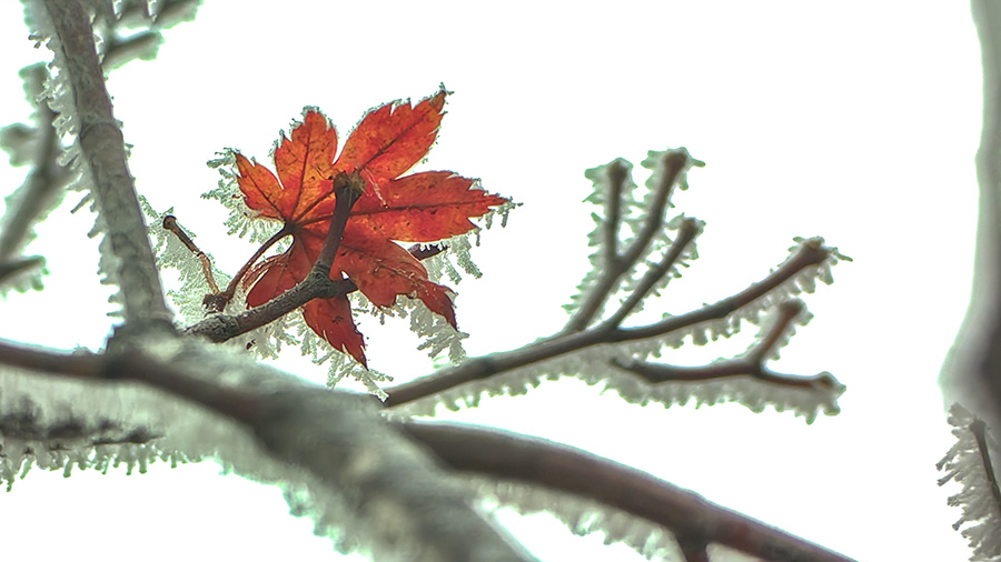 这场初春遇冰霜花,是不期而遇的美好,是大自然绘就的绝美画卷。