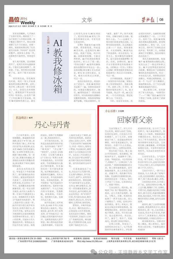 二、散文《回家看父亲》发《劳动报》2026年3月15日