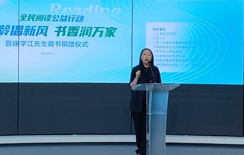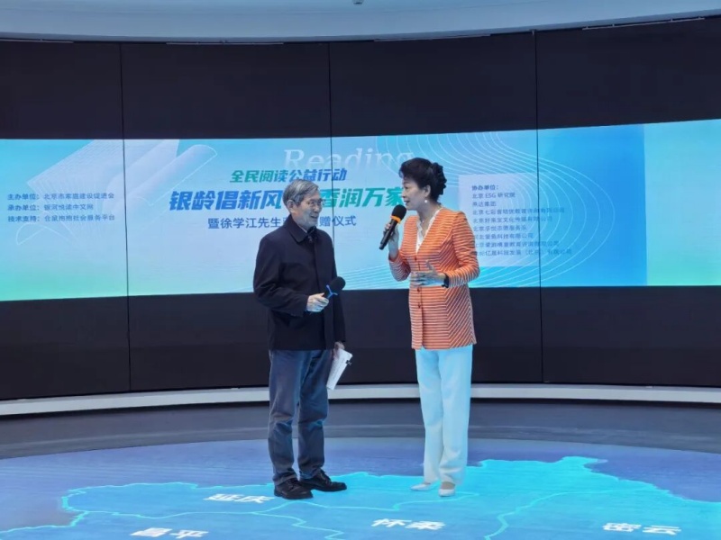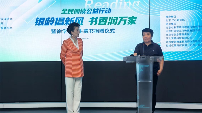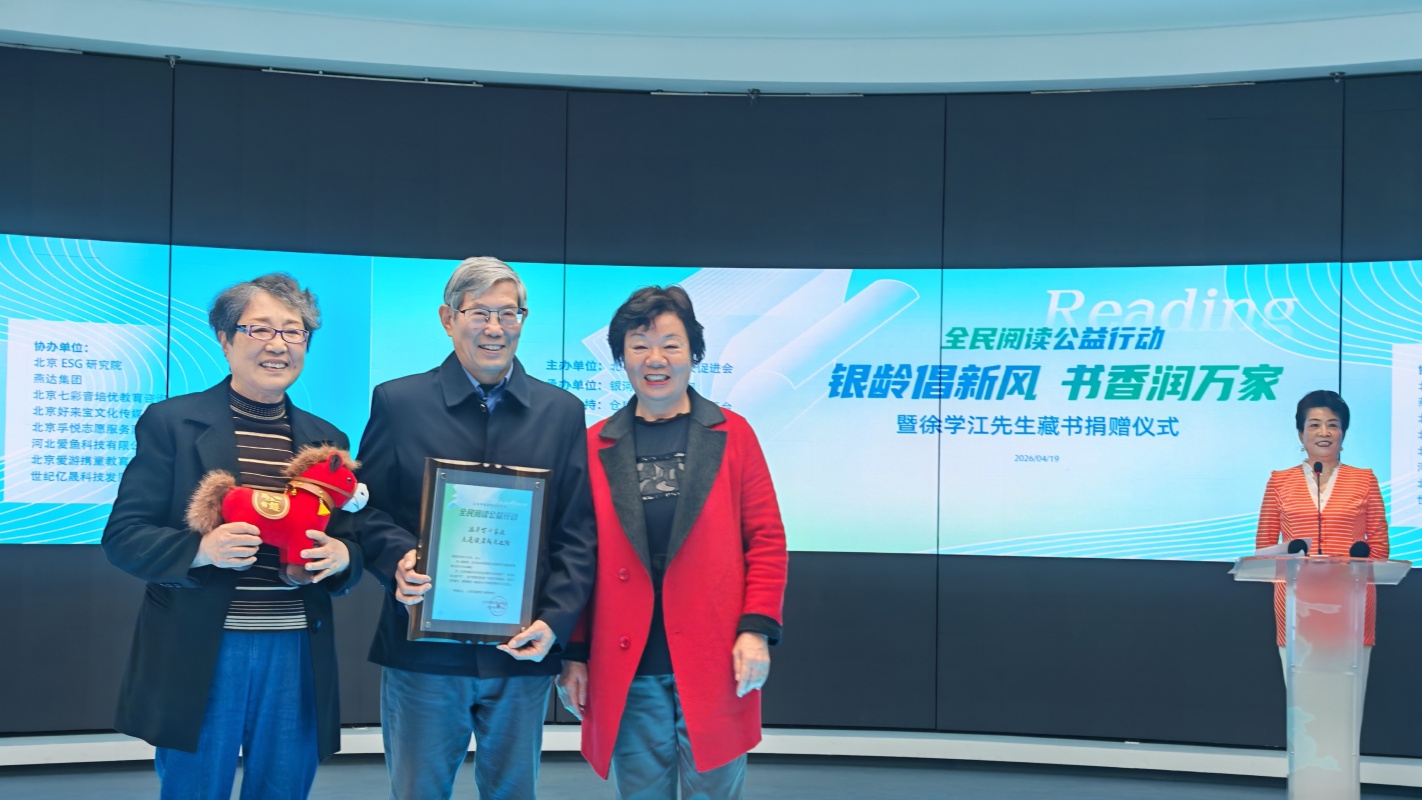 在《全民阅读促进条例》颁布实施、首个全面悦读活动周开启之际,由北京市家庭建设促进会主办,北京ESG研究院、燕达集团、北京七彩音培优教育咨询有限公司、北京好来宝文化传媒有限公司、北京孚悦志愿服务队、河北愛鱼科技有限公司、北京爱游携童教育咨询有限公司、世纪亿晟科技发展(北京)有限公司等协办、银河悦读中文网和仓鼠抱抱社会服务平台承办的“银龄倡新风 ,书香润万家暨徐学江先生藏书捐赠仪式”于2026年4月19日在北京ESG研究院成功举办。部分家促会理事单位代表、少先队员代表、燕达集团有关部门负责人等约60余人参加了本次活动。