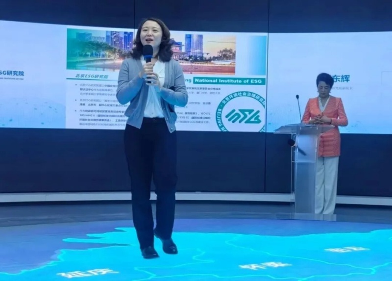 本次会议协办方也是义务提供会场支持的北京ESG研究院副院长刘东辉作了热情洋溢的发言,她向大家介绍了研究院的基本情况和主要职能,预祝本次活动圆满成功,诚邀大家来这里举办活动,他们会提供最好的服务。