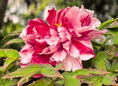 说 明:双色牡丹,红白相间,在绿叶的衬托下,一副和谐的画面,格外抢眼。