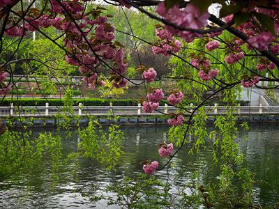 标 题:翠柳樱花映滨河