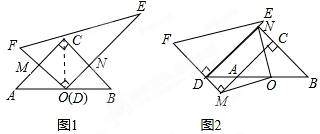 (3)将图1中的Rt△DEF沿着射线BA的方向平移至如图2所示的位置,使点D落在BA的延长线上,FD的延长线与CA的延长线垂直相交于点M,BC的延长线与DE垂直相交于点N,连接OM、ON,试判断线段OM、ON的数量关系与位置关系,并写出证明过程.