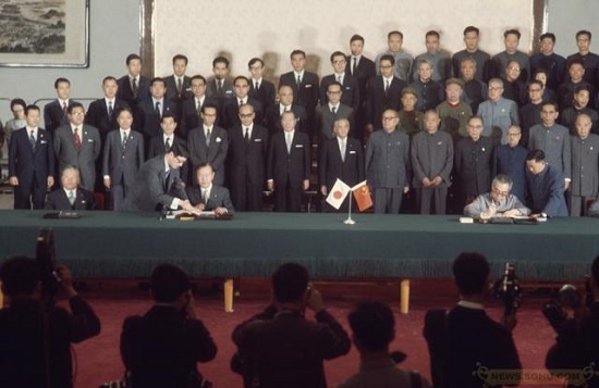 9月29日上午,周恩来总理、田中首相、姬鹏飞外长、大平外相正式在人民大会堂签署了《中日联合声明》。