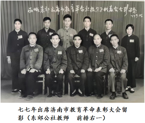 这一年我开始走鸿运了。当时我的工资待遇在学校已经是最高的了,可是国家下文按人头百分之二的名额涨工资,上级领导指定给我涨了一级。全公社教育上只给一个县人大代表名额,公社领导推荐了我。济南市召开表彰大会,我被市政府授予“教育革命积极分子”先进称号。回想我在调离历城师范前的遭遇,那真是“山穷水复疑无路,柳暗花明又一村。”天无绝人之路!