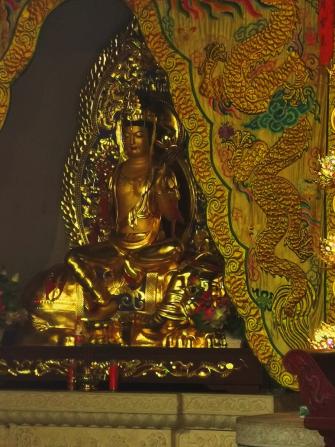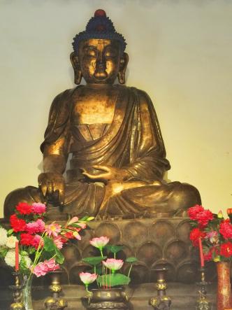 上山拜佛,走了一会,不知不觉有点气喘吁吁,于是坐在宝殿前石凳上小憩。这儿是可以看到整个宝殿的全貌,从宝殿殿门处可以看见释迦牟尼佛塑像,释迦牟尼庄严宝相、正气凛然、正襟危坐。佛的庄严,是一种智者的庄严,是看穿一切的庄严。在这庄严肃穆之中,佛似乎看穿了世人的满腹心思,这剪不断理还乱的一切纷争。此前我曾经看过一些佛教的书籍,书里的整体内容晦涩难懂,可是有些地方又让人似懂非懂。此时,我觉得神情有些飘然,以往的心中一些疑惑不禁脱口而出。