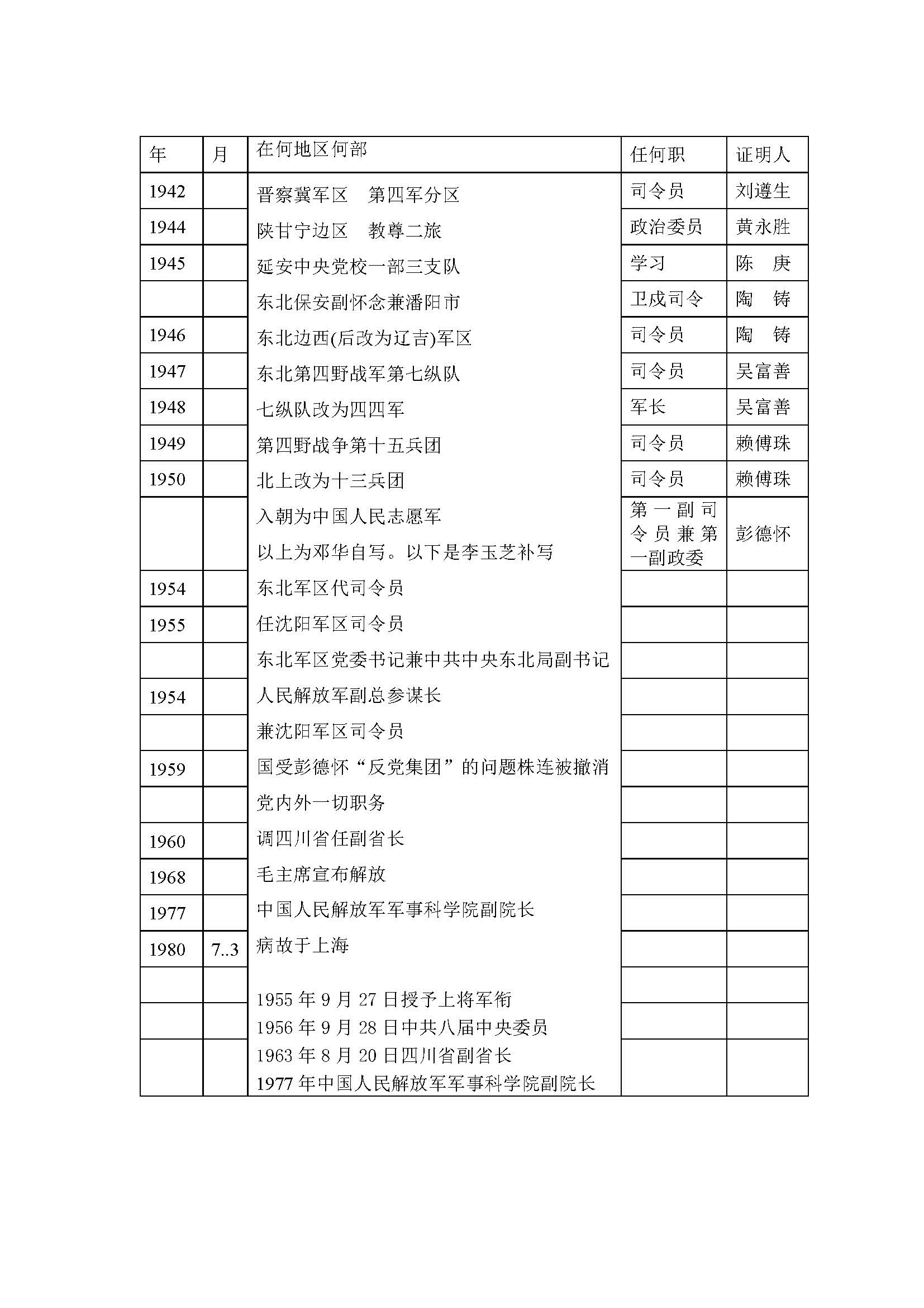 三、邓华年表